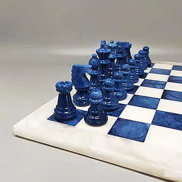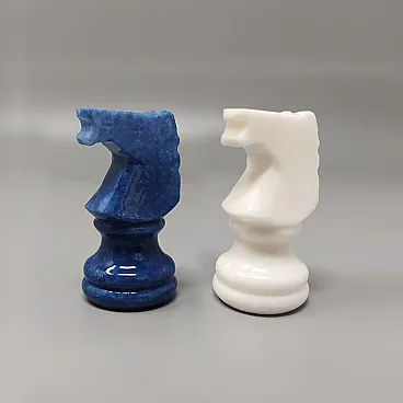 Blue and white chess set in Volterra alabaster handmade, 1970s