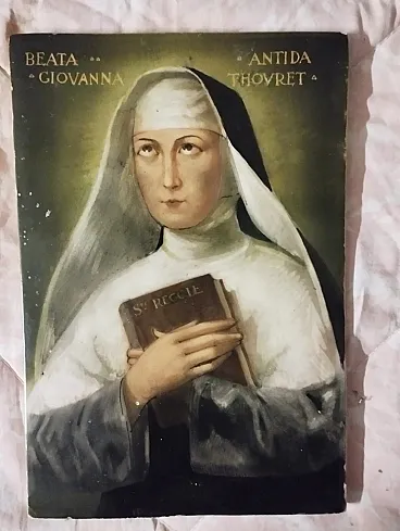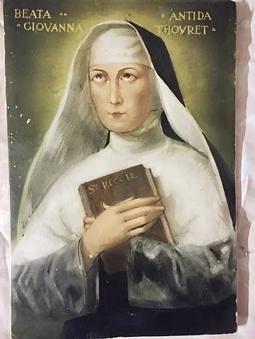 Painted majolica Tile of Saint Joan Antide Thouret, 19th Century