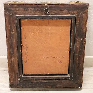 We are pleased to present this 20th century oil painting on plywood. This splendid mountain landscape is signed lower left, but the signature is difficult to read and the artist has not been identified. On the back there are some inscriptions and the date 1972.
