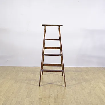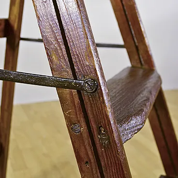 This charming folding staircase, dating back to the early 1900s, represents an authentic piece of rural antiques with a rustic and genuine character. Made of soft wood, the structure retains the original patina that testifies to its use over time, making it a perfect object for lovers of vintage style and shabby chic. The simplicity of construction and the solidity of the material elevate it from a mere working tool to a decorative element with a great visual impact. The functional design is enriched with robust iron finishes, visible in the hinges and side supports that ensure its stability. The steps have a lived surface that adds aesthetic depth to the piece. While retaining its original utility, this staircase lends itself beautifully as an original plant holder, alternative bookcase or furnishing complement for creative living. It is a unique opportunity to personalize an environment with a fragment of artisanal history from the beginning of the last century.