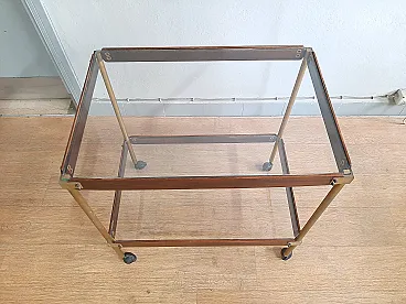Wood And Brass Bar Trolley With Double Glass Shelf, 70s