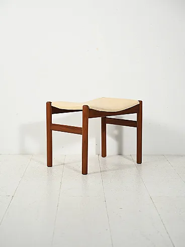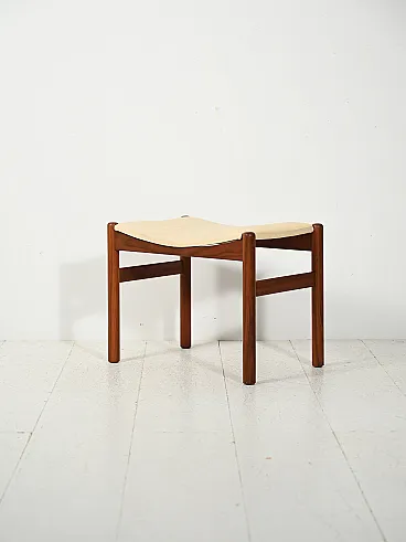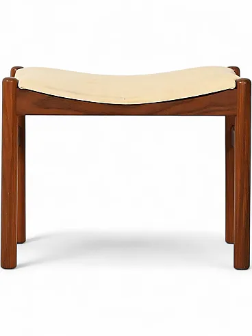 Norwegian footstool from the 1950s and 1960s, characterized by a teak structure with clean and well-proportioned lines. The design highlights the quality of the woodwork typical of Scandinavian production, with rounded uprights and crosspieces that define a solid but visually light structure.