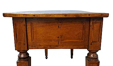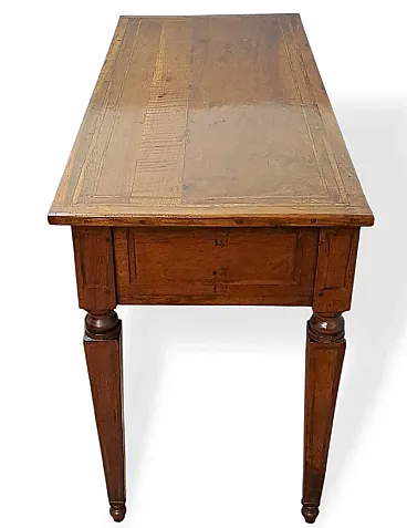 Top: Large rectangular top with a fine perimeter thread in light wood that defines its contours, enriched with a warm and deep patina that testifies to the era of the piece.