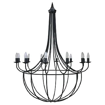 This large chandelier is perfect for spacious rooms, where it can become the focal point without overwhelming the space and providing pleasant lighting. Whether it is a private home or a public space, this iron chandelier will add a touch of unique charm to any environment.