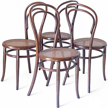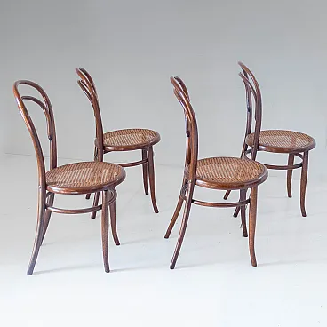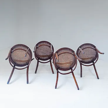 Set of four dining chairs in bentwood and Vienna straw from the early 1900s, by Josef Hoffmann (with original label).