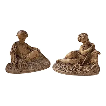 Pair of Pastoral Shepherd Figurines, Terracotta Patinated, 19th c.