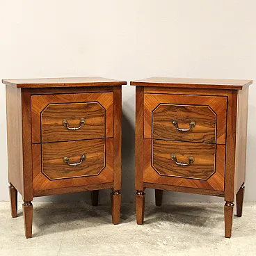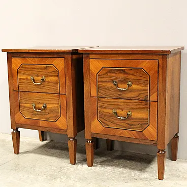 Pair of Louis XVI bedside tables Italian inlaid walnut, 18th century