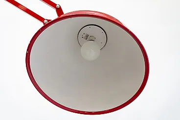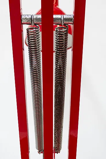 The balancing mechanism is supported by double tension springs made of harmonic steel, original and in excellent functional conditions, which ensure perfect sealing of the arm position without sagging. The balancing system is functional, but for extremely high positions it requires a slight recording of the tension of the springs or joint clutches, a standard operation for this model. The lamp holds its position steadily with the diffuser at approximately 190 cm height, an ideal configuration for illuminating large living areas, meeting tables or lofts, creating a dramatic arch of great impact.