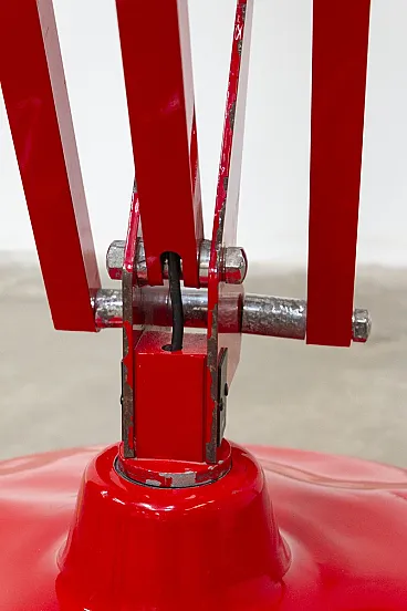 The lamp has been used for exhibitions and photography sets and has marks and small dents consistent with the activity. The springs have some sign of time (but no rust) and some clamping elements have traces of use and time. However, it appears in excellent condition, aesthetic and functional, and makes its "gigantic" appearance.