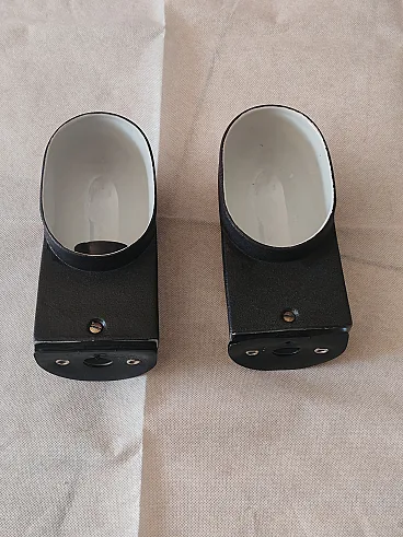 For sale is a pair of splendid wall sconces (wall lamps) in enamelled iron, characterized by a clean and minimal design, typical of the industrial style of the mid-twentieth century.