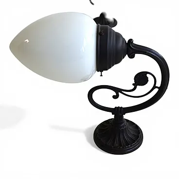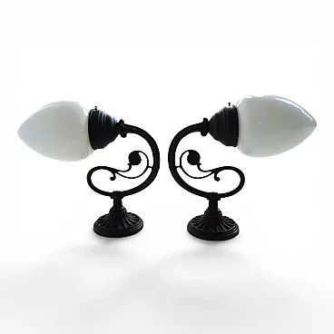 This beautiful pair of lamps in elegant Art Nouveau style combines artistic design with high-quality craftsmanship and timeless aesthetics. Made of solid brass, the lamps impress with their warm, deep brown hue, which particularly elegantly highlights the curved forms. The filigree wall bracket features a harmonious, floral pattern with flowing lines – typical of Art Nouveau – lending the lamps a lively, almost organic appearance.