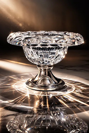 The finely crafted crystal combined with the silver base creates an elegant and timeless whole. Perfect as a centrepiece, confetti holder, bonbon holder or decorative element.