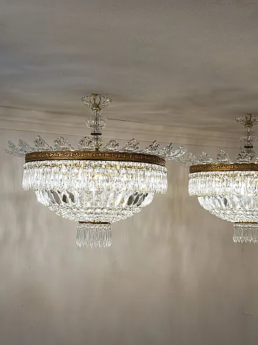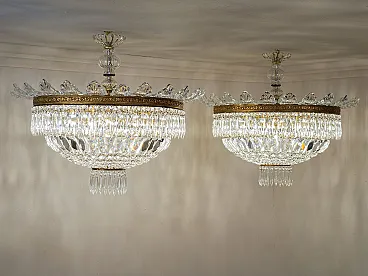 Pair of Empire style crystal hot air balloon ceiling lights, 1940s