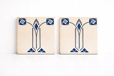 The presence of two perfectly coordinated tiles makes them ideal as symmetrical decorative elements or for valuable restoration projects.