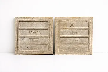 Refined pair of German ceramic tiles produced by the famous Somag Meissen factory (Sächsische Ofen- und Wandplattenfabrik AG) between 1900 and 1910.