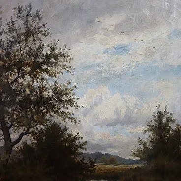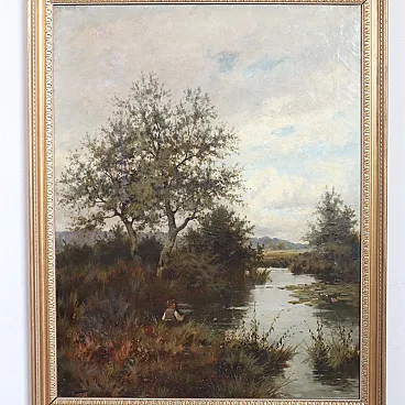 We are pleased to present this late 19th century English oil on canvas painting. This beautiful river landscape is signed "J. Paulman" lower left. It is probably a work by the English painter Joseph Paulman, whose biography is little known, but who was active in England at the end of the 19th century, dedicating himself mainly to painting river landscapes. Lacking authenticity.