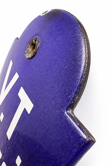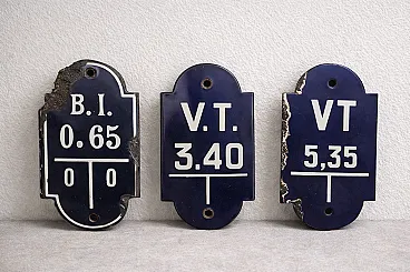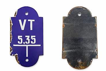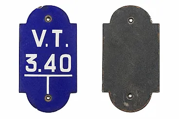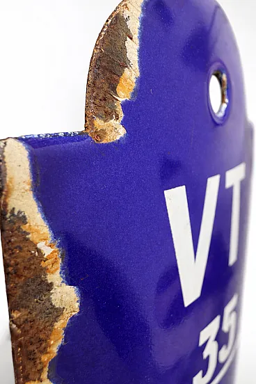 Made of metal enamelled in classic cobalt blue with contrasting white characters, they have a splendid patina of age. Signs of wear and oxidation on the back confirm its authenticity and prolonged outdoor use.