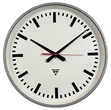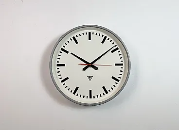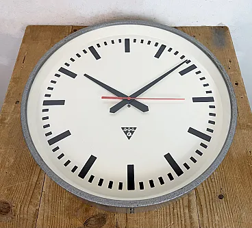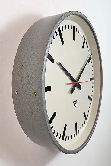 Large Grey Industrial Factory Wall Clock from Pragotron, 1960s