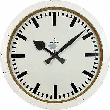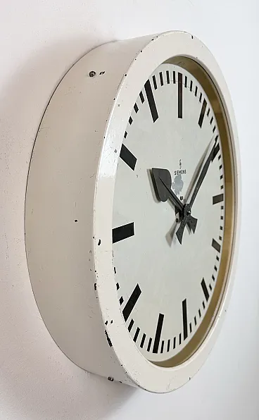 Large White Industrial Factory Wall Clock from Siemens, 1950s