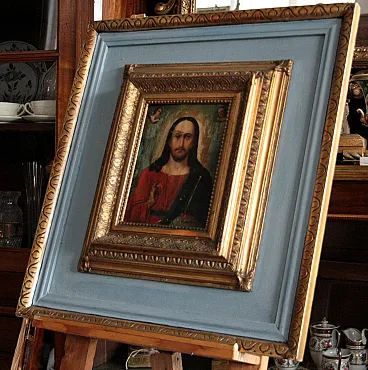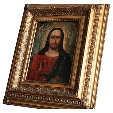 Orthodox icon "Christ Pantocrator" 18th century Russian area Orthodox icon "Christ Pantocrator" 18th century Russian area, a specimen of considerable art-historical value from the Russian cultural area. The work, datable to the 18th century, depicts Christ Pantocrator according to traditional Orthodox iconography. Dimensions 58 cm wide by 56 cm high. The composition displays stylistic features typical of the Russian iconographic school of the period, with particular attention to the details of the divine figure and sacred symbolism. The artifact constitutes an important testimony to the spirituality and religious art of Eastern Orthodoxy.