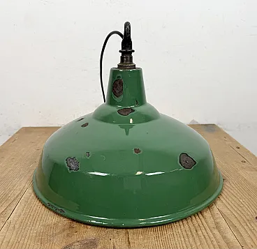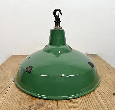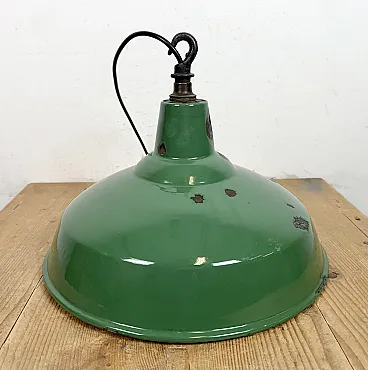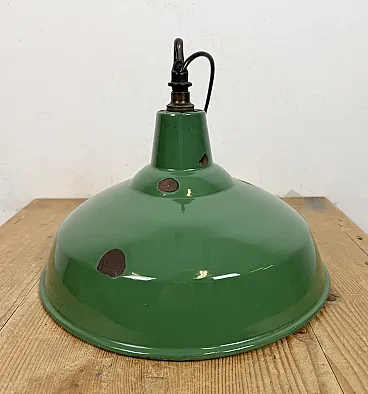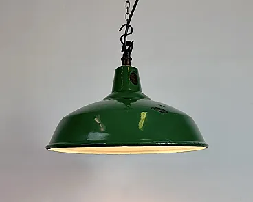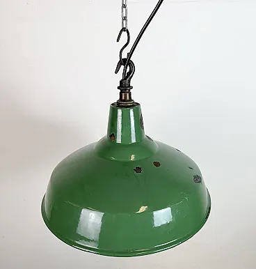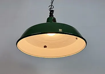 Industrial British Green Enamel Factory Pendant Lamp, 1960s