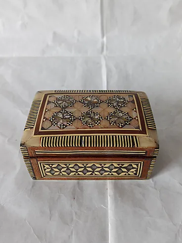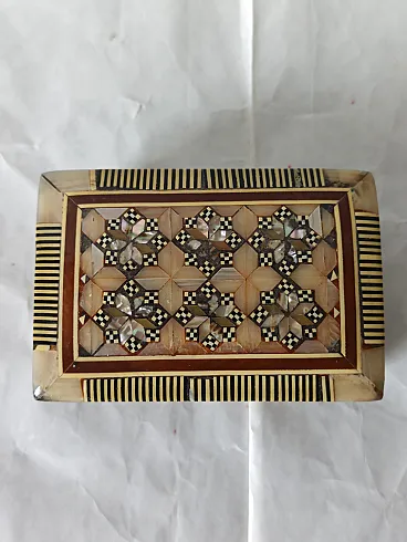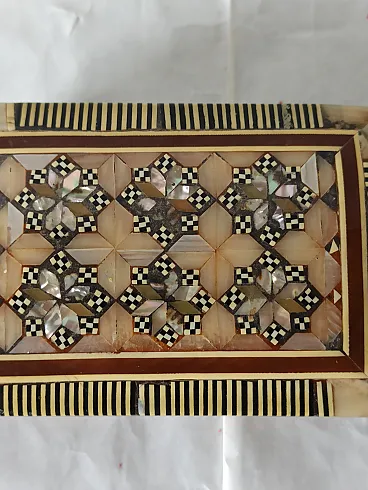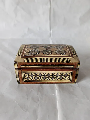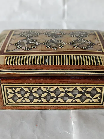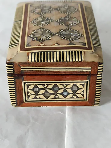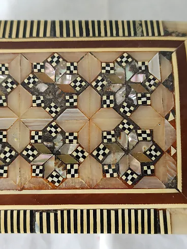 Mahogany and mother-of-pearl jewelry box, 50s