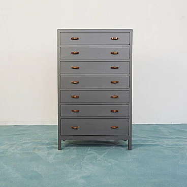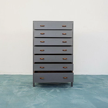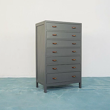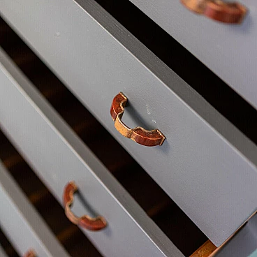 Optician's chest of drawers in wood, metal and bone, 1940s