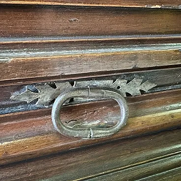 The hardware, simple and essential, integrates harmoniously into the structure without altering its historical character. A piece of furniture with a strong presence and authenticity: its diamond-point workmanship and double-body structure make it a significant example of antique Italian furniture, capable of defining the space with character and history.