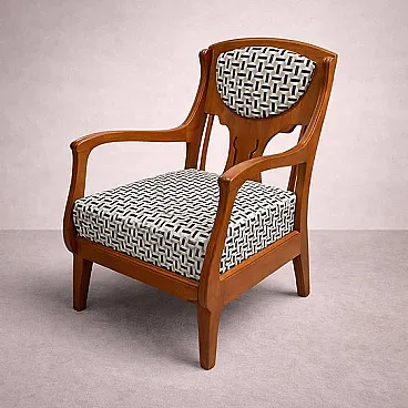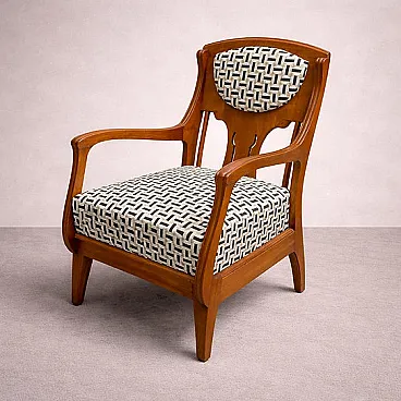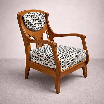 Elegant Italian Art Nouveau armchair from the early twentieth century, made of oak wood, characterised by a harmonious structure and a fluid design.