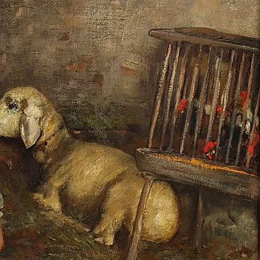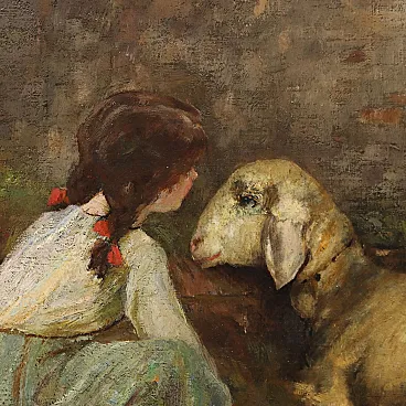His first production was influenced by Domenico Morelli, whose pupil he was in Naples; some realist tastes were inspired by rural scenes, with shepherdesses and flocks, like the one presented here.