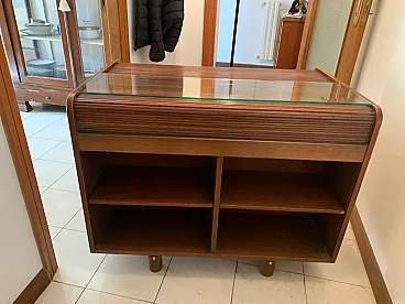 Glass Top: The upper surface is protected by a sheet of ground glass, which allows you to place objects on it without scratching the wood and gives a touch of visual lightness.
