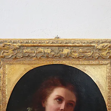 The painting is framed in a stunning 20th century giltwood frame, with an oval opening that perfectly focuses attention on the sitter's figure.