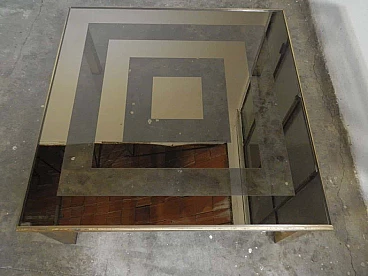 Squared brass-plated coffee table with striped mirrored glass top, Italy, 70s