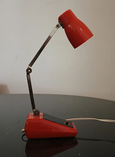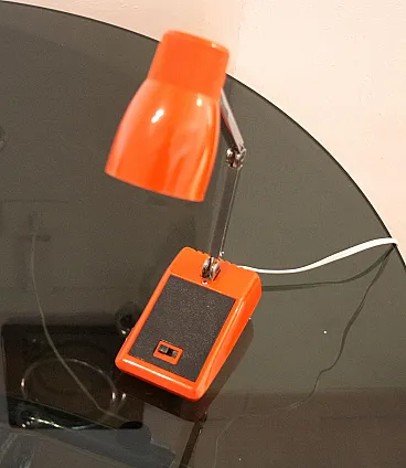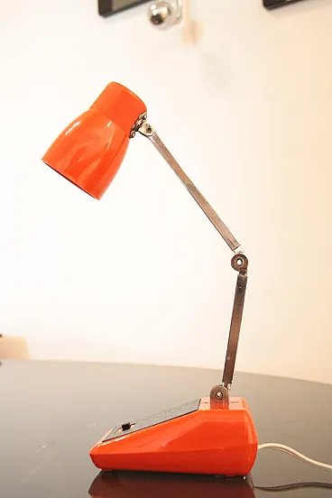 MG Table Lamp made in Hong Kong, 1970-an authentic specimen of vintage lighting from the 1970s. Made in Hong Kong, this elegant lamp features a compact base measuring 13 cm by 10 cm and rises 40 cm high. The characteristic design of the era reflects the industrial aesthetic of the period, with clean lines and essential functionality. The original finish and construction details testify to the quality craftsmanship of the MG brand, which is known for producing fine furniture accessories. A collector's piece that adds character and history to any contemporary setting.