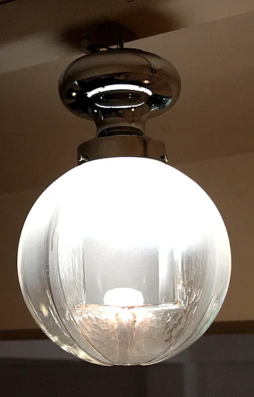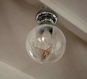 Chromed ceiling lamp in Murano blown glass, 1960s