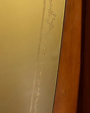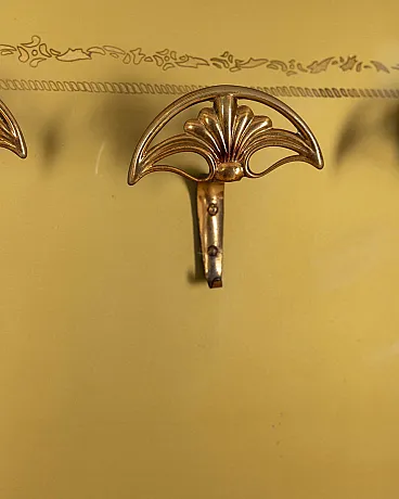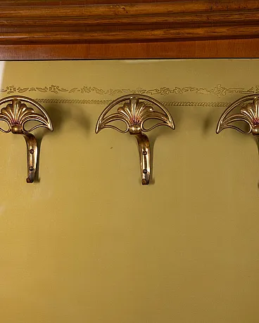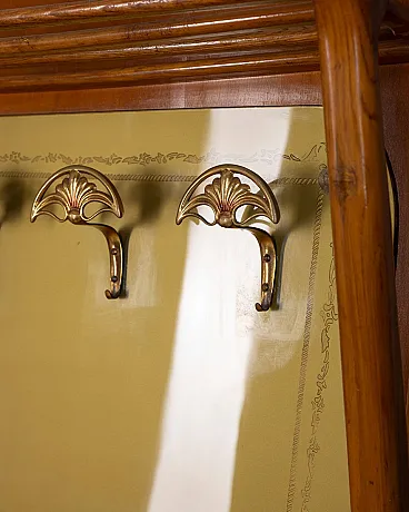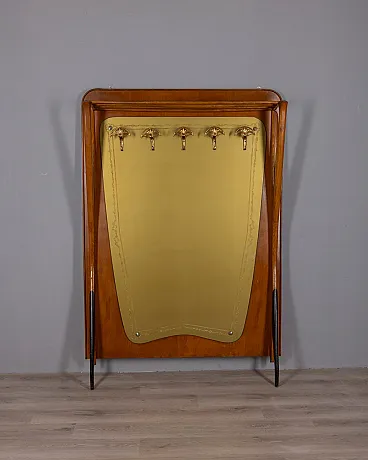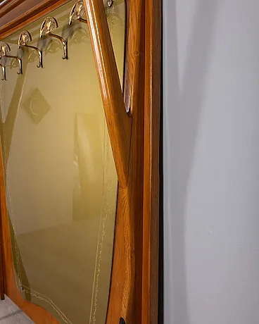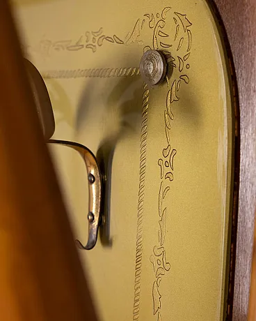 Wall coat rack in wood and decorated glass, 1950s