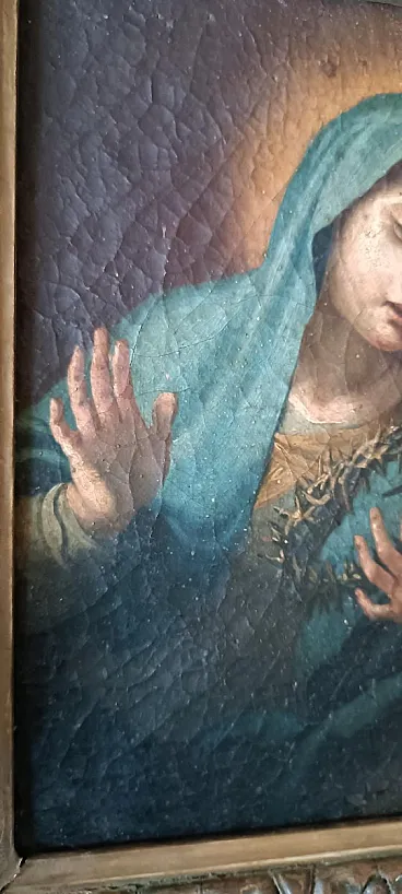 He painted Our Lady of Sorrows (or Mater Dolorosa), a classic subject of Christian sacred art. The work is recorded in the presence of a sword depicting the heart of the Virgin, a professional symbol of Mary's painful set, and the crown of the spine holding her hands.