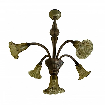 Purple and amber glass chandelier, from a private collection. 5 lights with e27 socket. Restored.