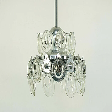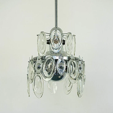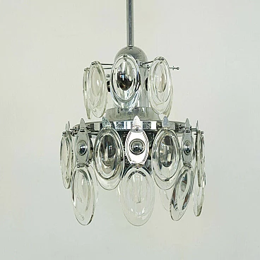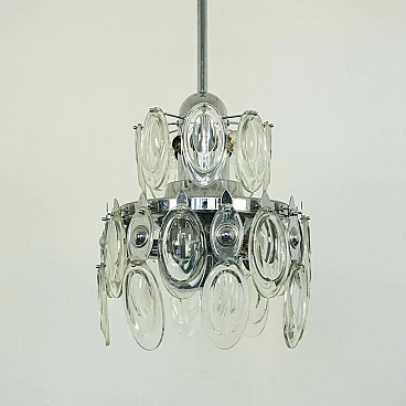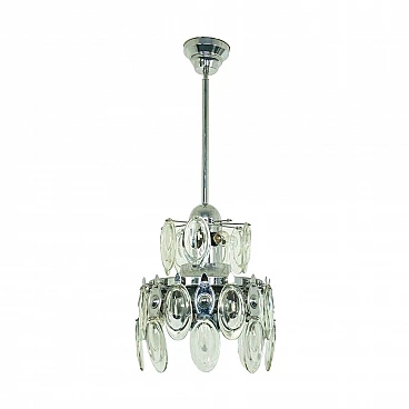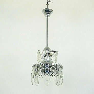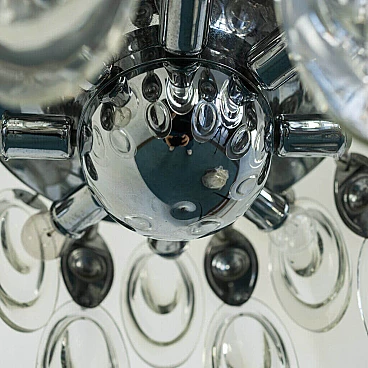 12-light chandelier in chromed steel and glass by Sciolari, 70s