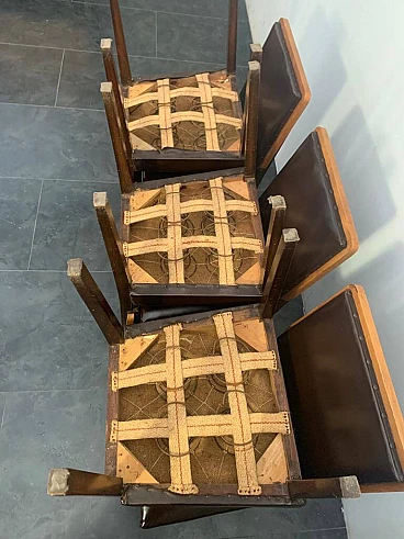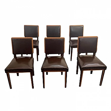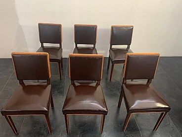 6 Art Deco dining chairs in elm, maple and leatherette, 1940s