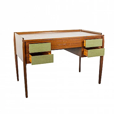 Desk designed and produced by the designer Vittorio Dassi. Wooden structure in formica The desk has 4 drawers covered with a brass panel. Object in good condition, with slight signs of time. To report small defects visible in the picture. Typical design of the 50s.