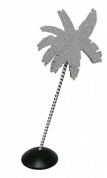 Very rare Caribe lamp produced by Targetti for Fiorucci, designed by Ettore Sottsass, original of the time, stock item still in its original box. Base structure, body and diffusers in metal screen-printed with the famous "bacterio" motifs. Height about cm 92, leaf width cm 36, perfect condition, lamp never used, pulled out of its original scotola only for photographs, original plastics and original booklet targetti.