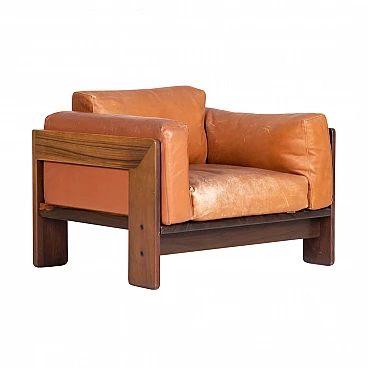 Bastiano armchair by Tobia Scarpa for Gavina, 1960. Bearing structure in rosewood. Flying cushions with polyurethane bottom and feather top on covered steel elastic rods. The original leather upholstery has some surface scratches.