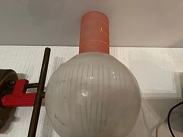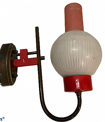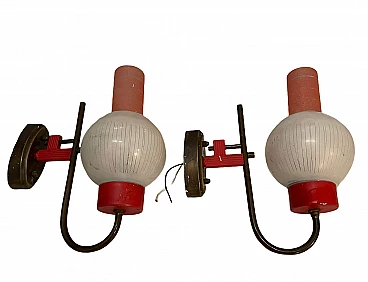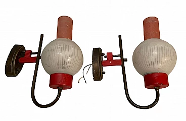 A set of 2 Stilnovo Sconces in red and bronze with glass shades Height 23 cm Width 20 cm Depth 20 cm Features 1 light that Requires E14 light bulb. New wiring installed.