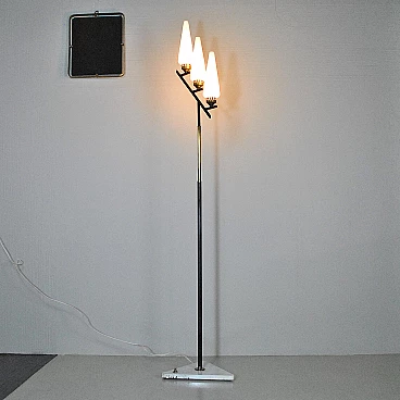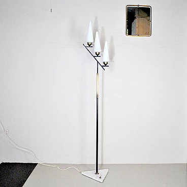 Floor lamp in opaline glass, brass and marble by Stilnovo, 50s