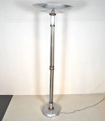 Rationalist floor lamp in aluminum, copper and glass canes, 40s