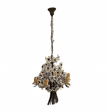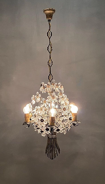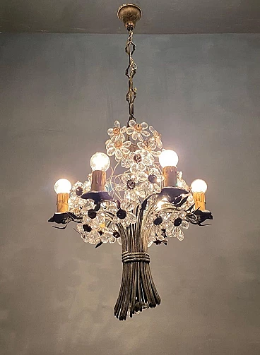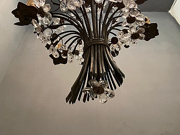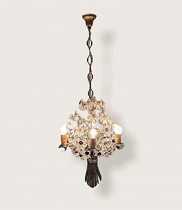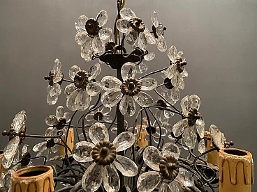 Bronze chandelier with crystal flowers in the style of Maison Baguès, 20s