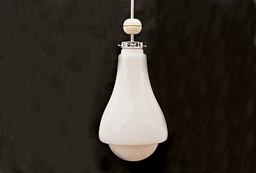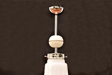 Chandelier in metal and opaline glass by Carlo Nason attributed to Mazzega, 70s