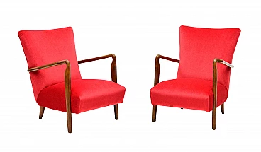 Armchairs Model 401 by Cassina, in walnut and red velvet, 1940s