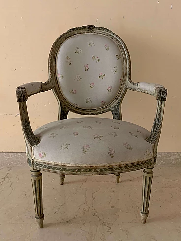 Pair of small armchairs in lacquered wood, 19th century